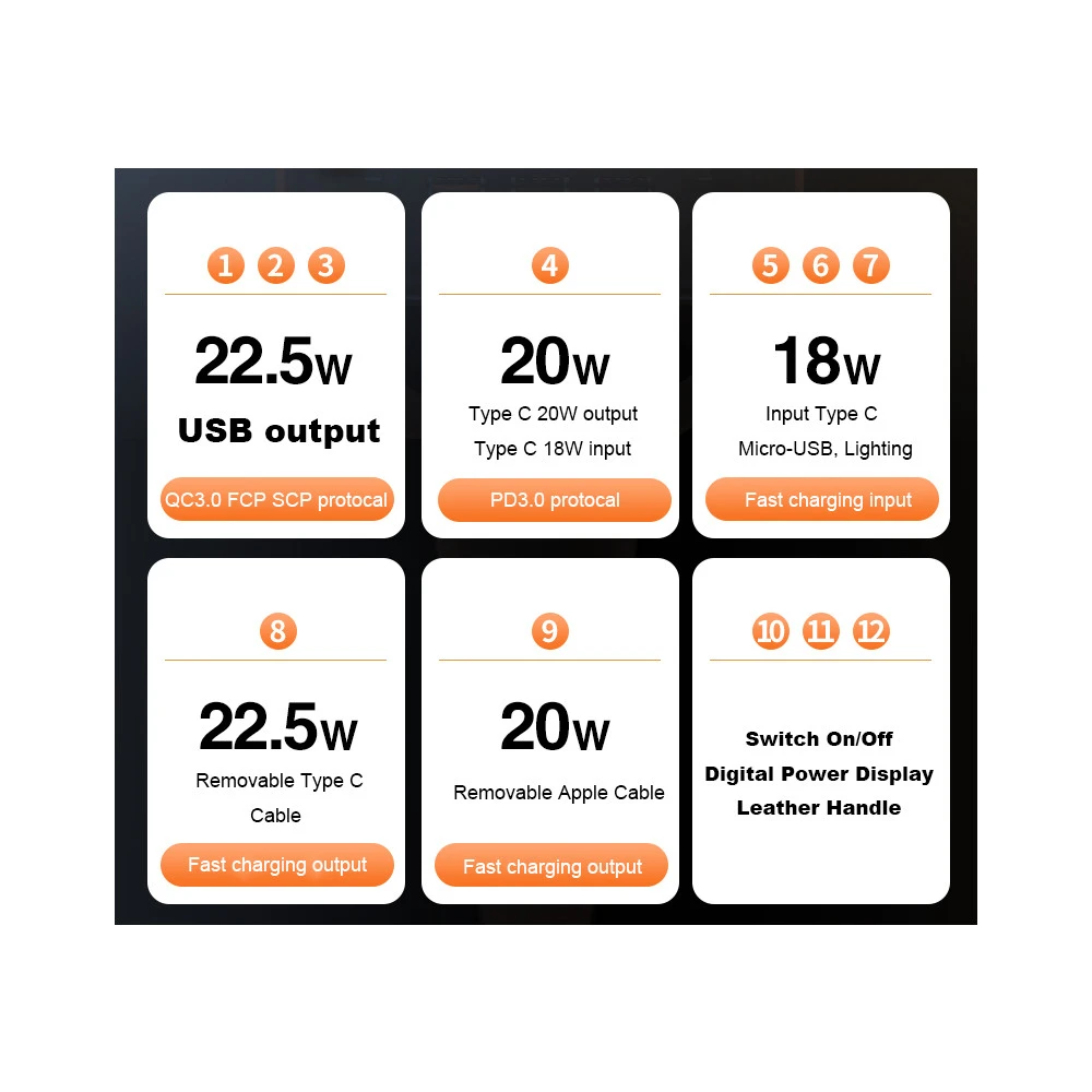 Function: Quick Charge Support, LED Display, GaN Tech, 80,000mah High Capacity