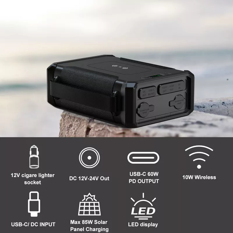 2 x 12V voltage cigarette lighter socket outputs can supply power to car refrigerators, CPAP machines and so on; type-C (PD 60W) supports laptop charging; and dual USB allows QC3.0 quick charge.