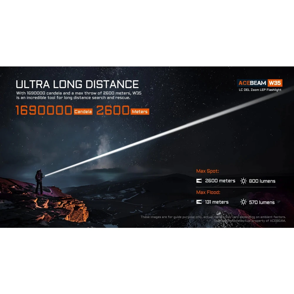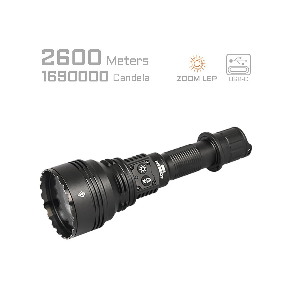 Maximum light concentration: 2600 metres (1690000cd); 800 lumens