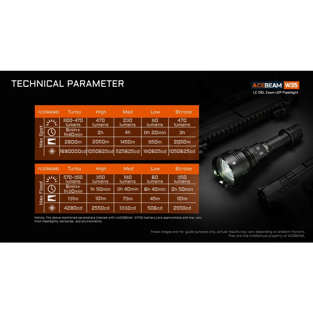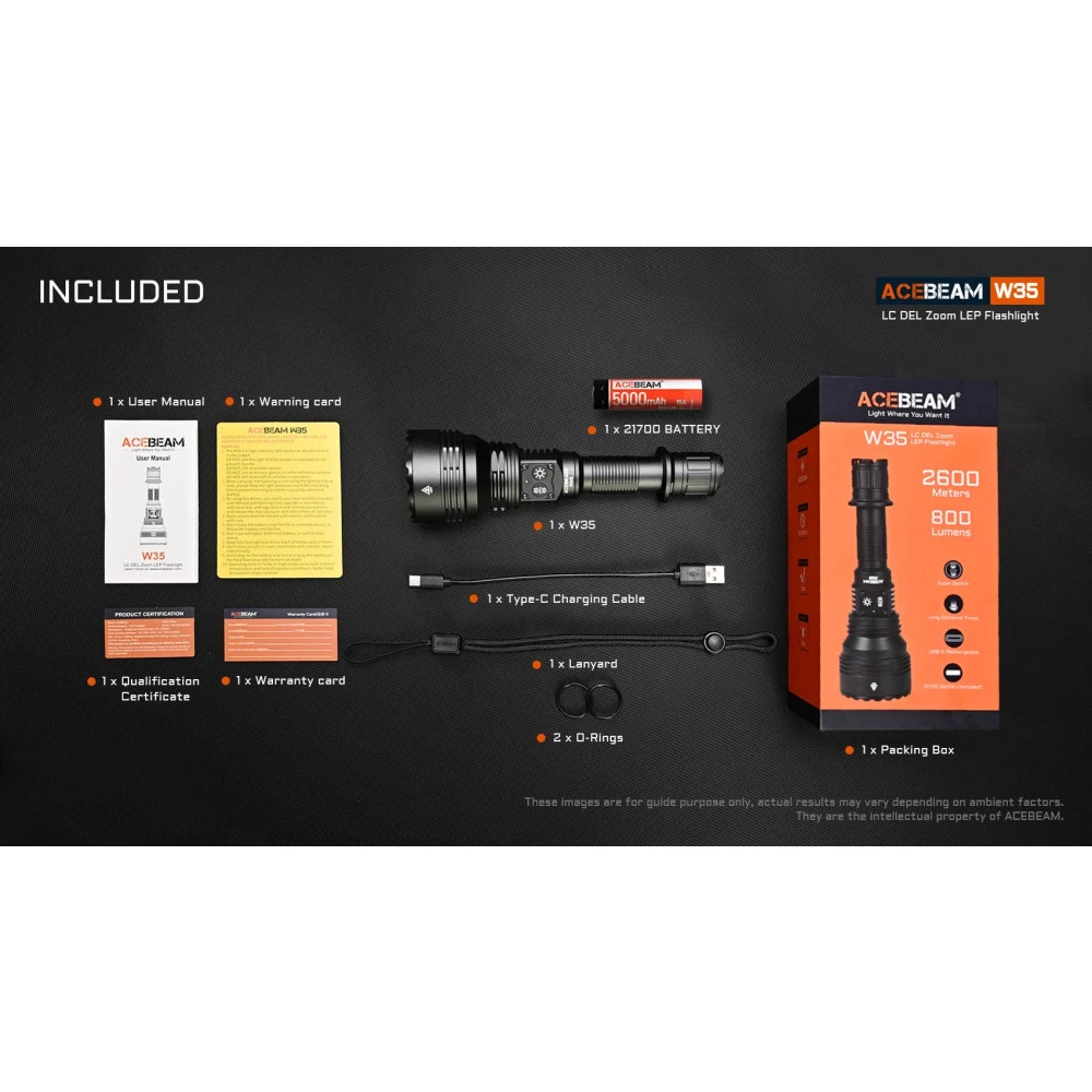 Batteries: 1x 21700 AceBeam Lithium Ion Battery Included