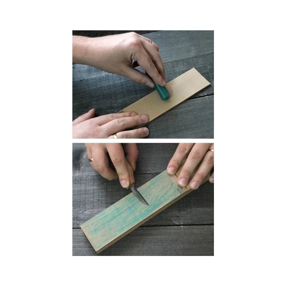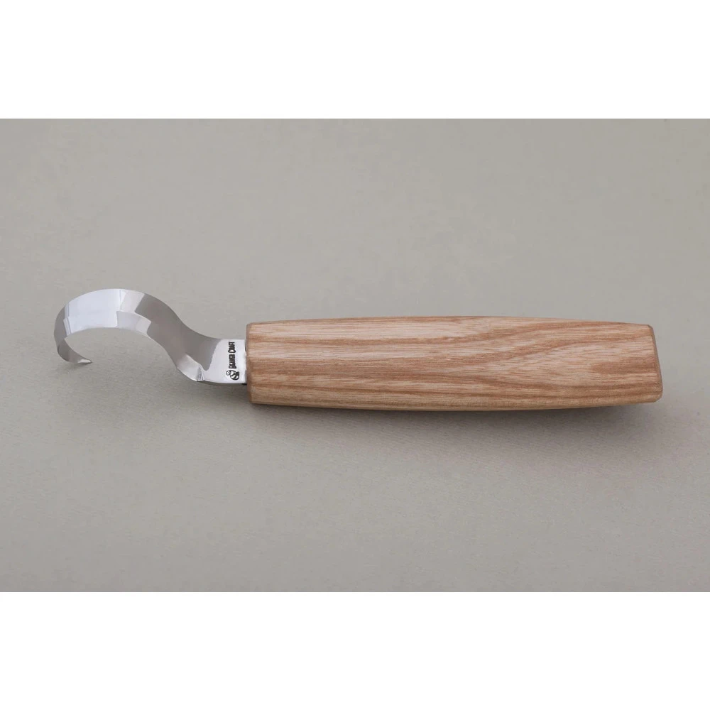 The S01L basic spoon carving set from Beaver Craft, includes a small whittling knife with a 60mm blade length, and a left-handed spoon carving hook knife. The whittling knife is used to give shape to the spoon, then the hook knife is used to cut out the spoon, and smooth out the wood. The Beaver Craft wood carving tools for cutting wooden spoons are made from durable high-carbon steel and well-sharpened, which allows you to cut soft and hardwood. The handles are ergonomic, made from Ashwood and covered with linseed oil. A leather strop with the green/grey polishing compound are included to help you to keep the blades razor-sharp.