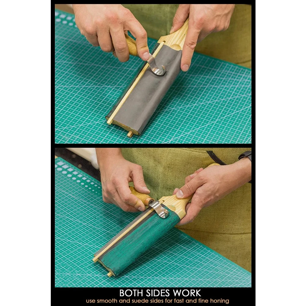 - Polish hook knives or rounded chisels using the smooth leather side.