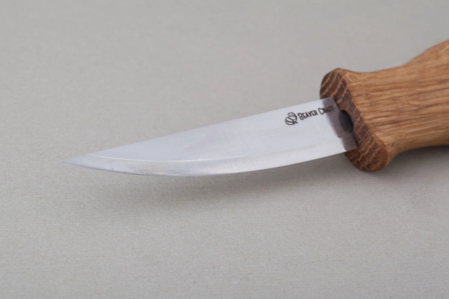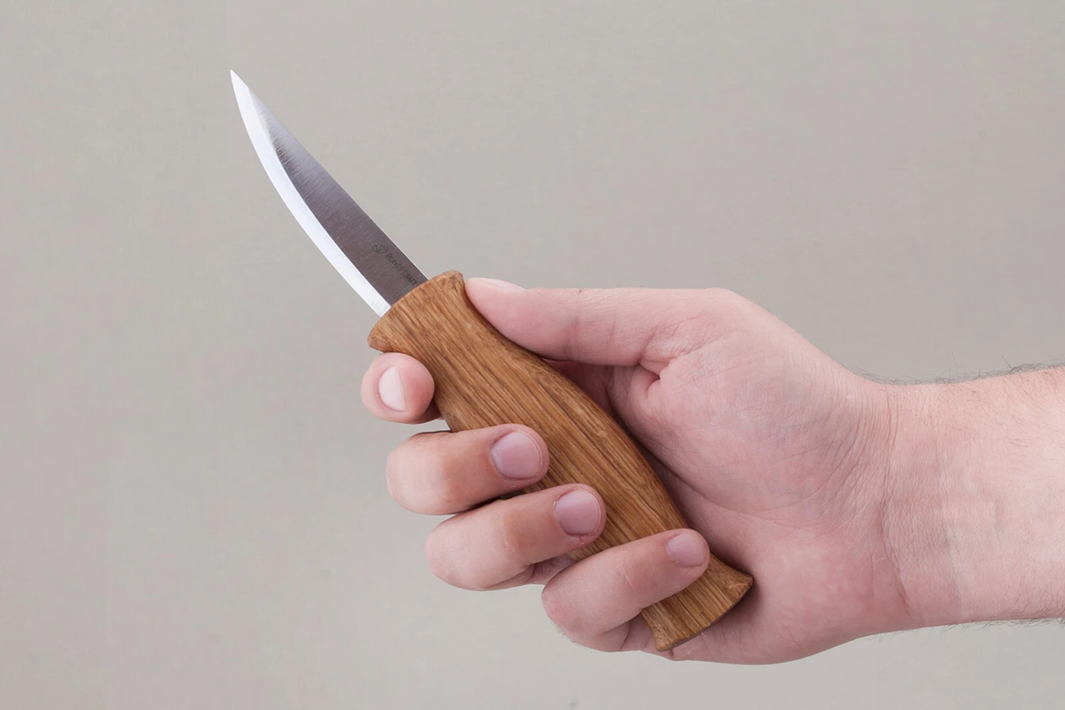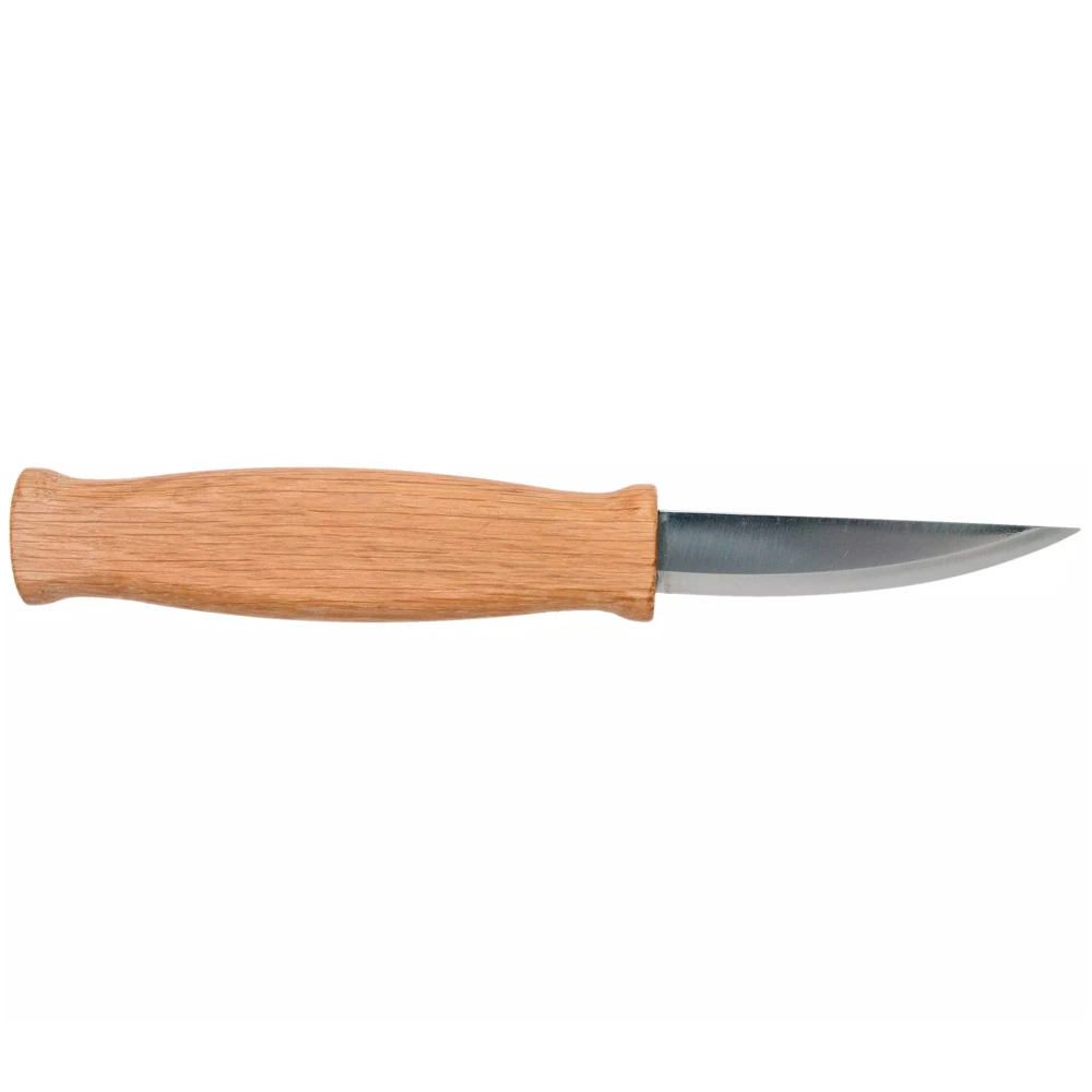 The blade, crafted from high-carbon steel, is well-sharpened, guaranteeing effortless and precise cuts. The handle, made from oak wood and coated with natural linseed oil, provides a comfortable and secure grip. The ergonomic design ensures a pleasant feel in your hand, making extended carving sessions fatigue-free.