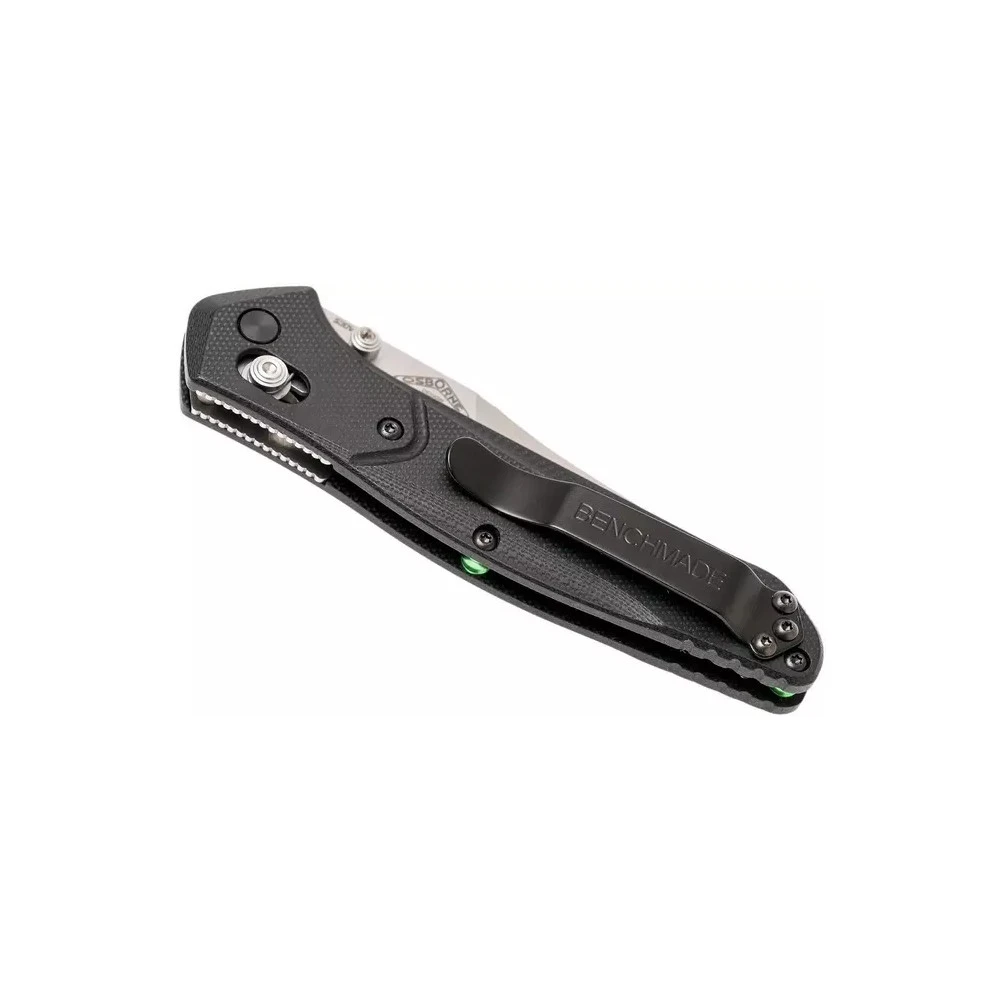 Continuing the tradition of the perfect every day carry knife, this Osborne design combines 3D-milled G10 handles and an open backspacer design, set off with green anodised barrel spacers bringing this 940 into the modern era.