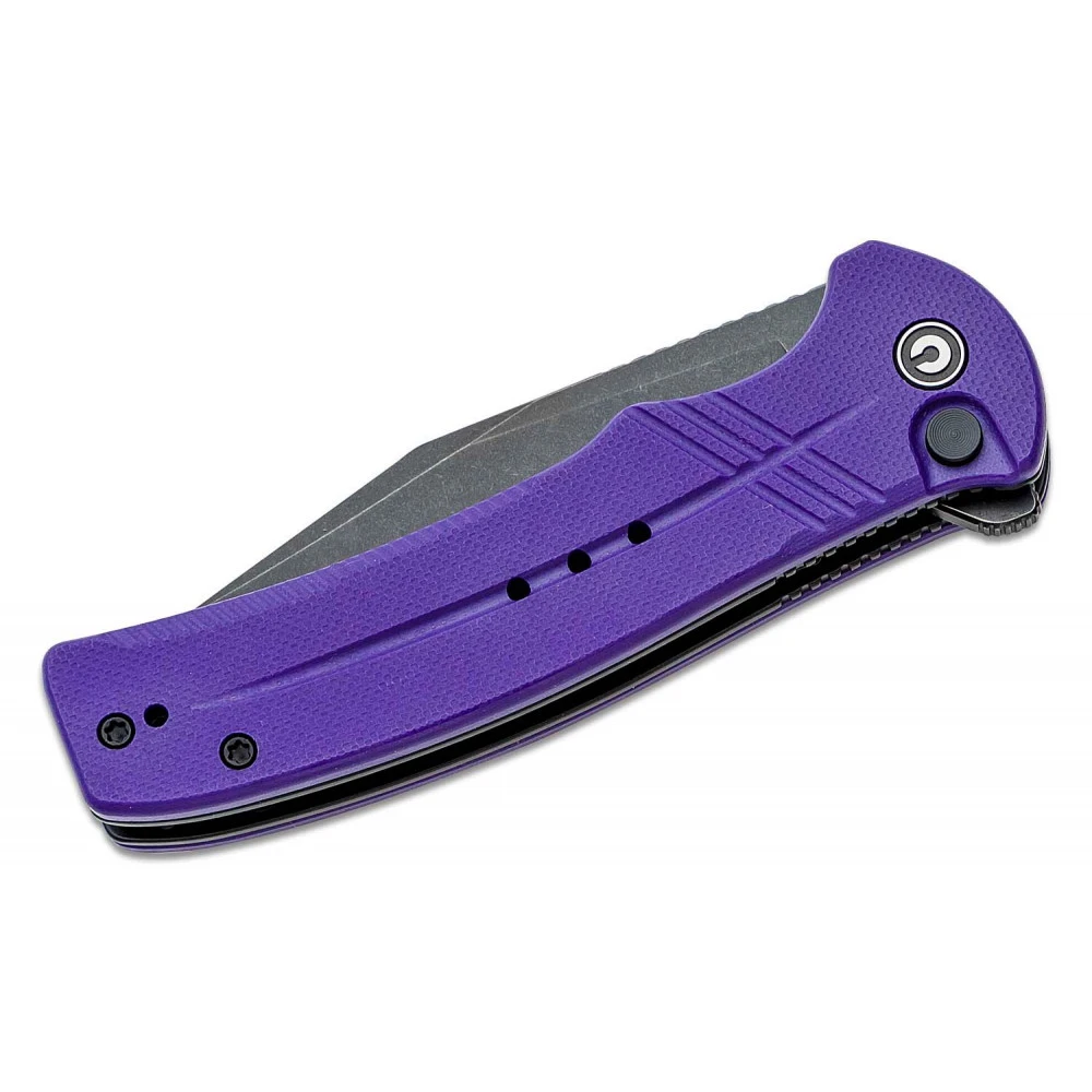 CIVIVI Cogent, Black Stonewashed 14C28N, Purple G10, Button Lock, C20038D-2