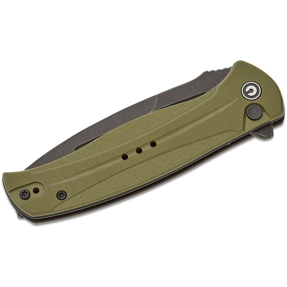 CIVIVI Incindie, 3.48″ Black Stonewashed Spear Point 14C28N Blade, OD Green G10 Handles, Button Lock, C23053-2