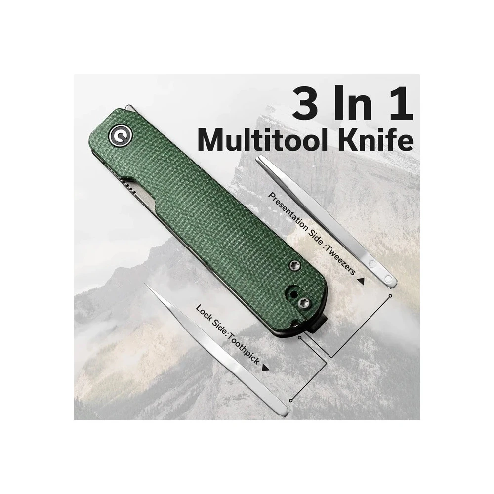 CIVIVI Sendy, Green Canvas Micarta, Stonewashed Nitro-V Drop Point Blade, C21004A-1