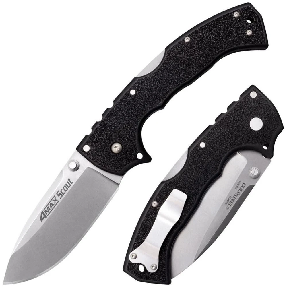 Cold Steel 4-Max Scout – 4″ AUS-10A Stonewashed Blade, Black Griv-Ex Handles, Lockback – 62RQ