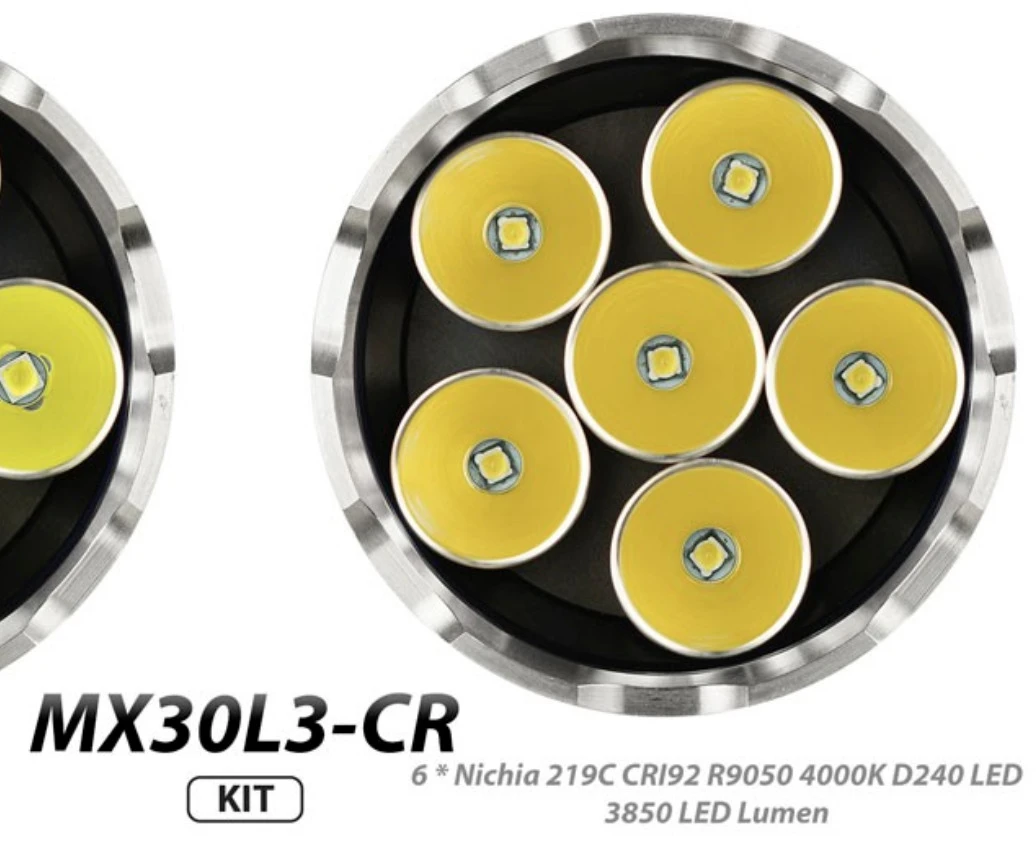 LED: 6x Nichia 219C 4000K CRI92 R9050 SW40 D240 LED
