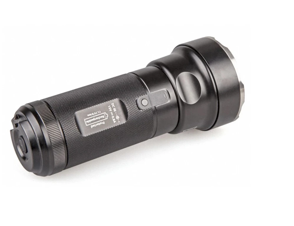 - Dual switch operation: Black-turn on (in maximum mode) and power off, white-change of modes and turn on at minimum brightness. The black button is duplicated by a similar button in the end