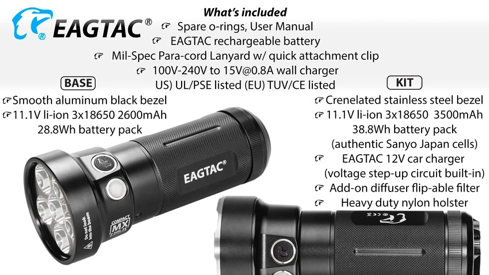 - Battery EagTac R38 (11.1 V, 3500 mAh, 38.8 W * H)