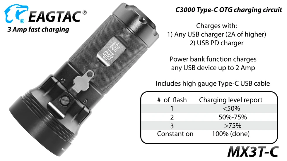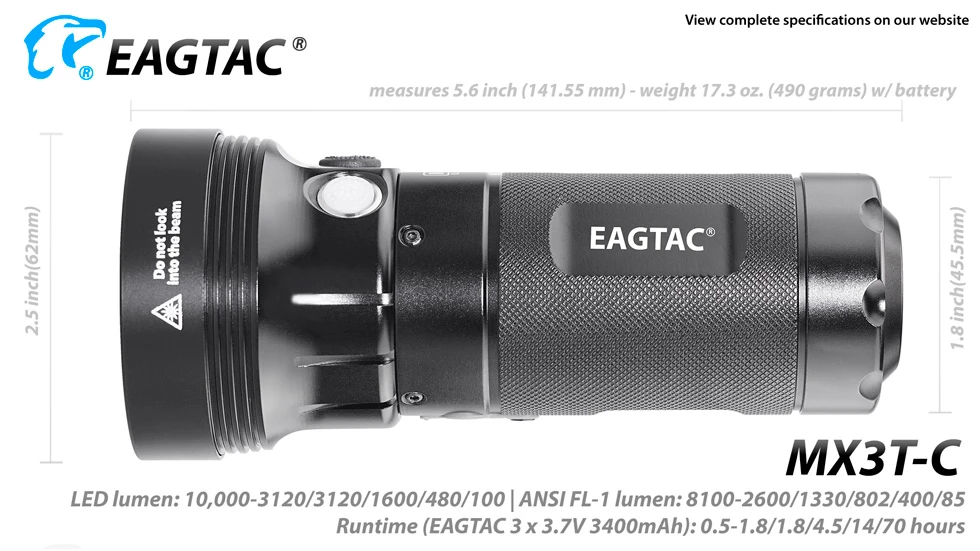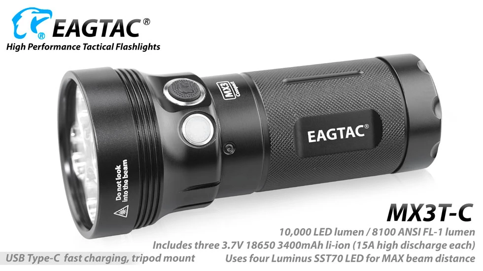 - 3 x EAGTAC 3.7V li-ion 18650 3400mAh (15A protection PCB)