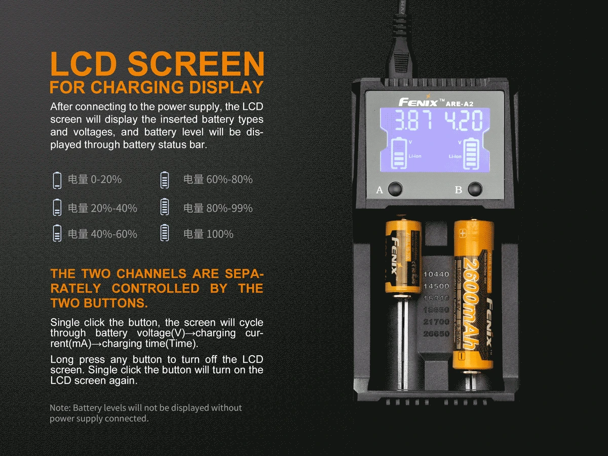 - Output: 4.2V/1.0A: 10440,14500,16340,18650, 21700, 26650 Li-ion battery 1.5V, 1.0A: AA, AAA, C Ni-MH / Ni-Cd battery