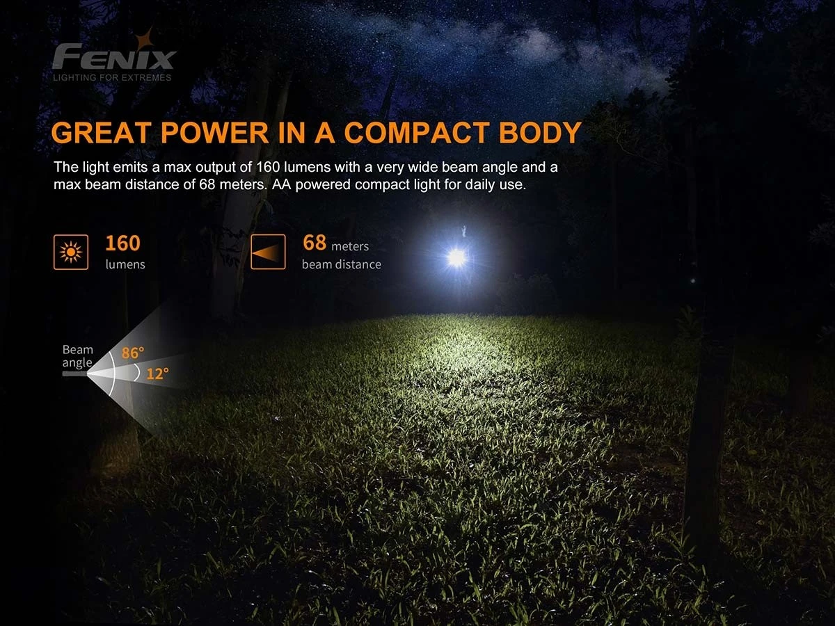 - High: 160 Lumens – Runtime of 1 Hour, Distance of 68 Metres