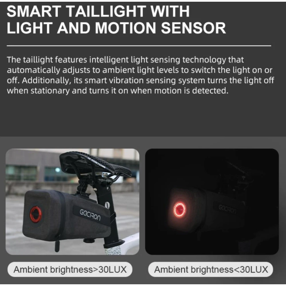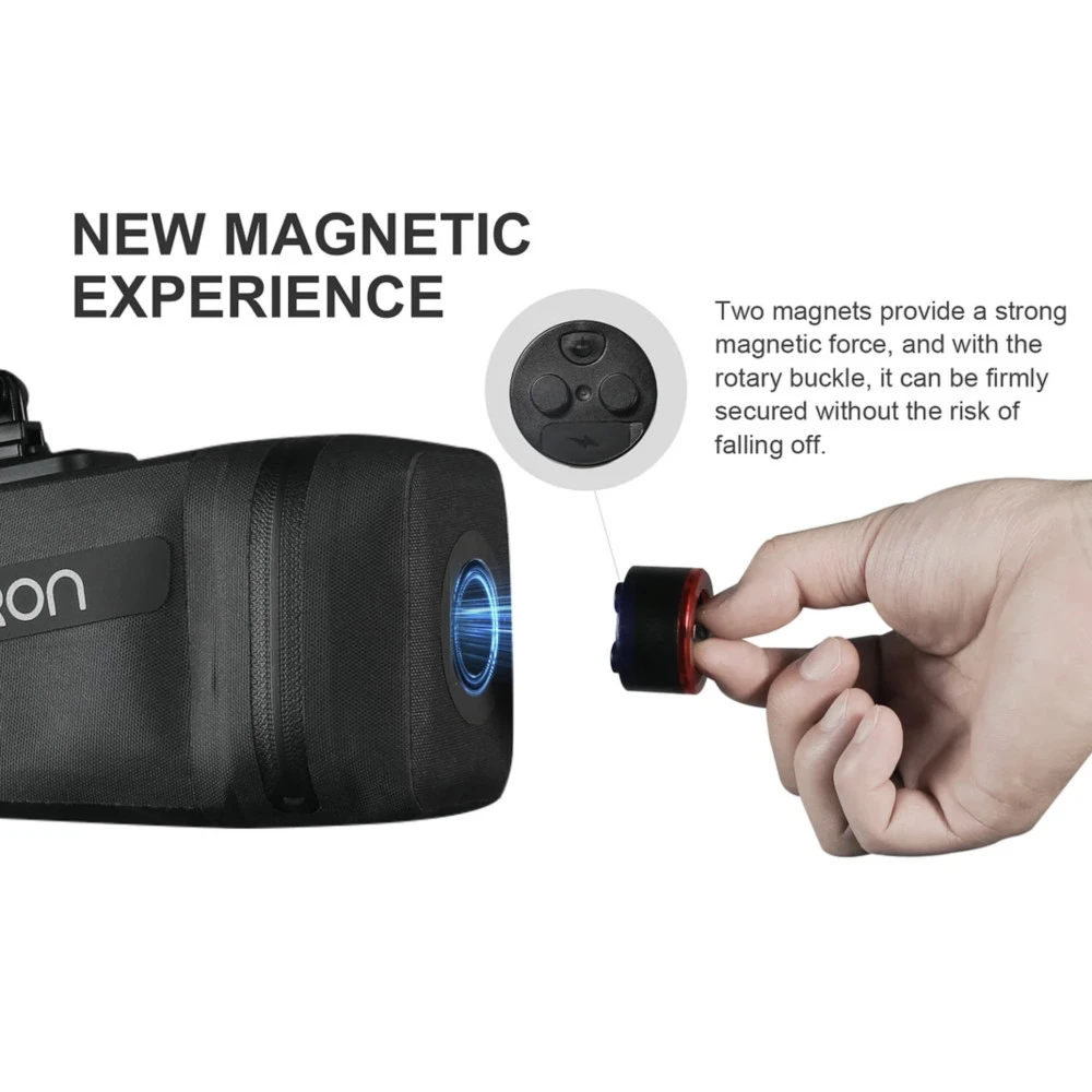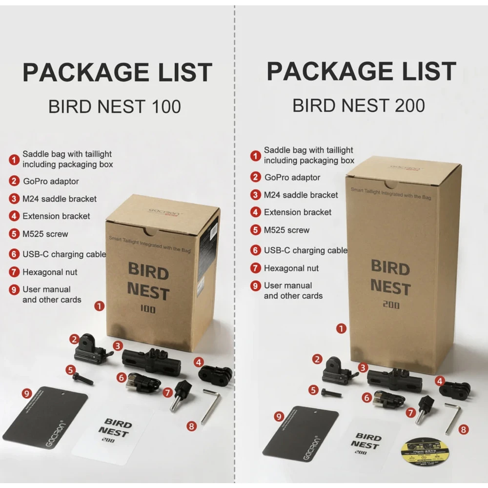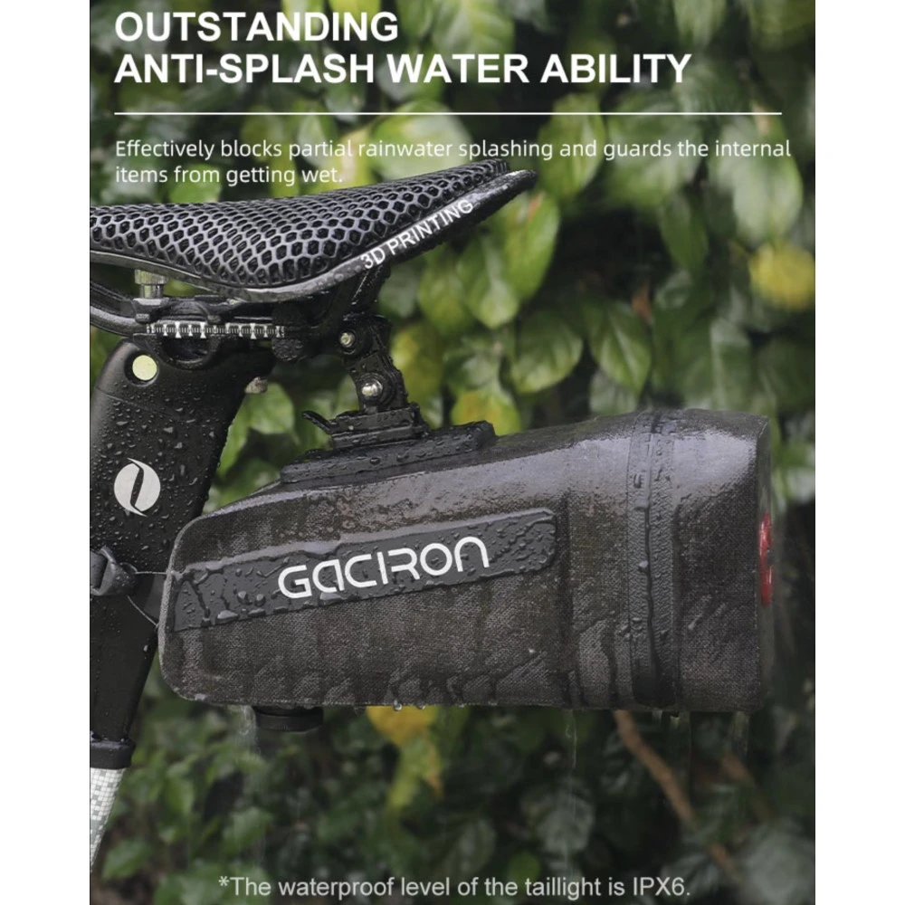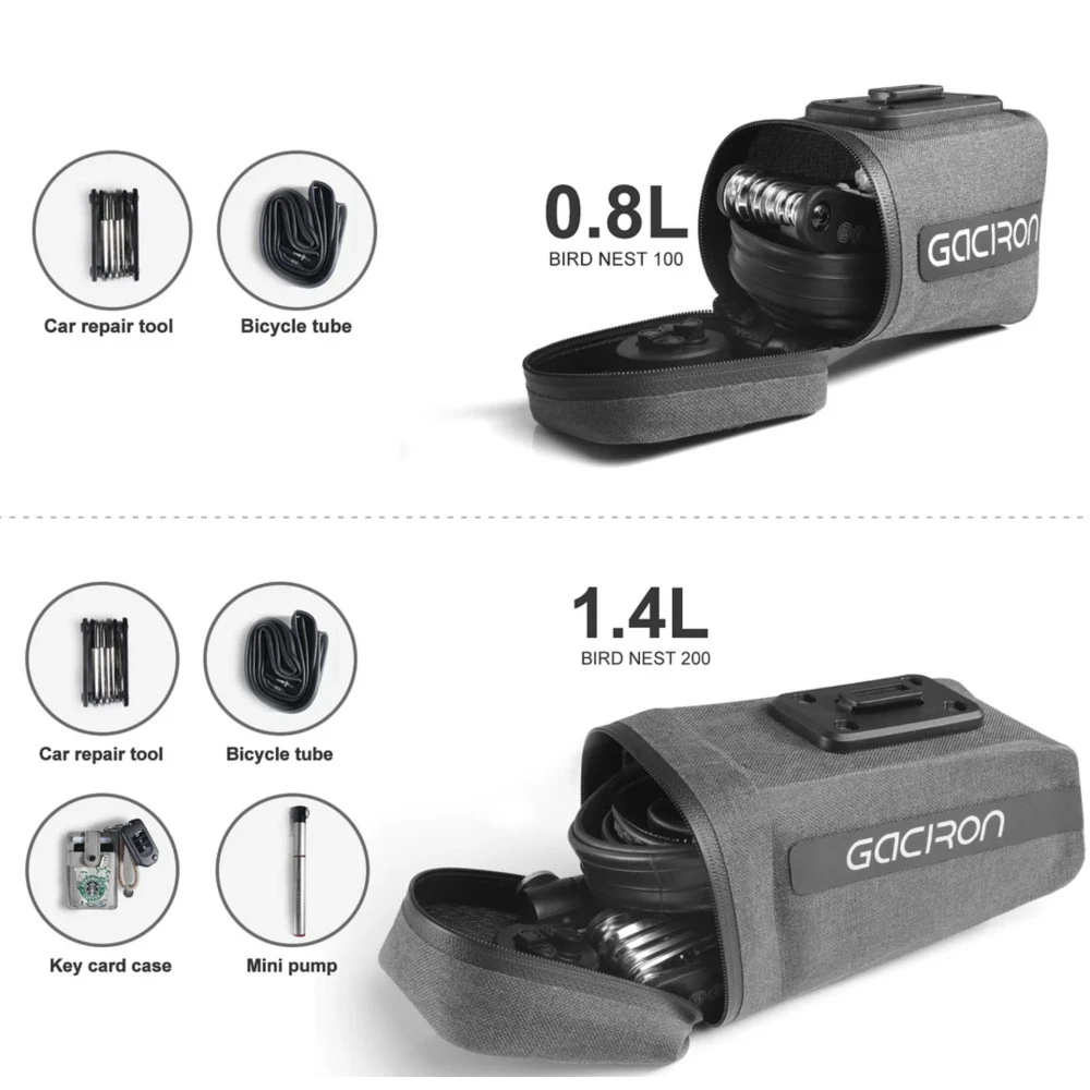 With 0.8L storage capacity, and integrated rechargeable tail light, the Gaciron Bird Nest 100 is an innovative 2-in-1 cycling saddle bag. The Bird Nest 100 measures 130mm x 90mm x 70mm, offering ample storage space for small personal belongings, repair tools, spare tyre tube etc. The integrated Type-C rechargeable tail light is removable for charging, is magnetic, and also features motion sensor operation, 5 light modes, and long runtimes. Bird Nest 100 is easy to install, and is supplied with all the necessary installation components.