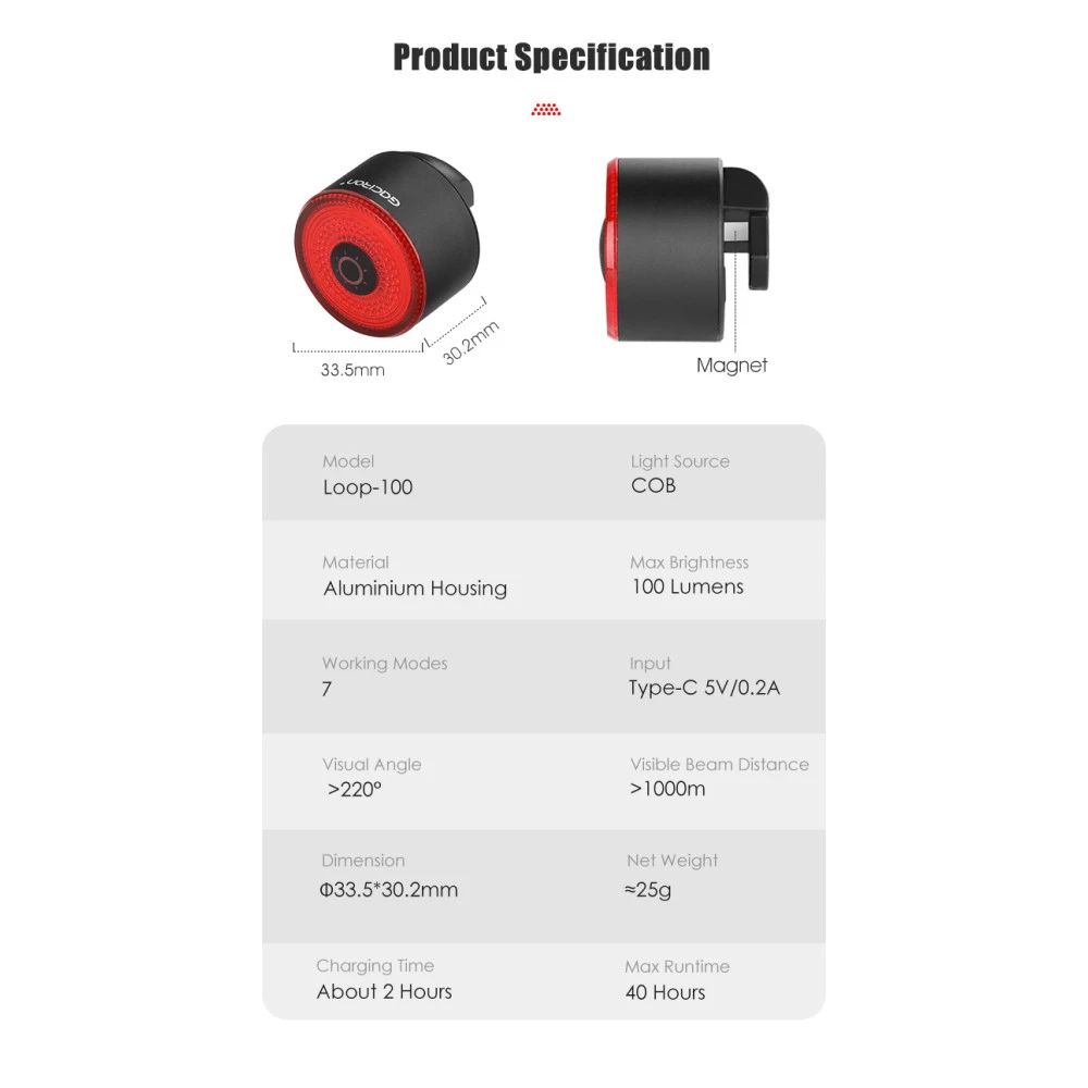 Gaciron LOOP-100 Rechargeable Smart Brake Bicycle Tail Light