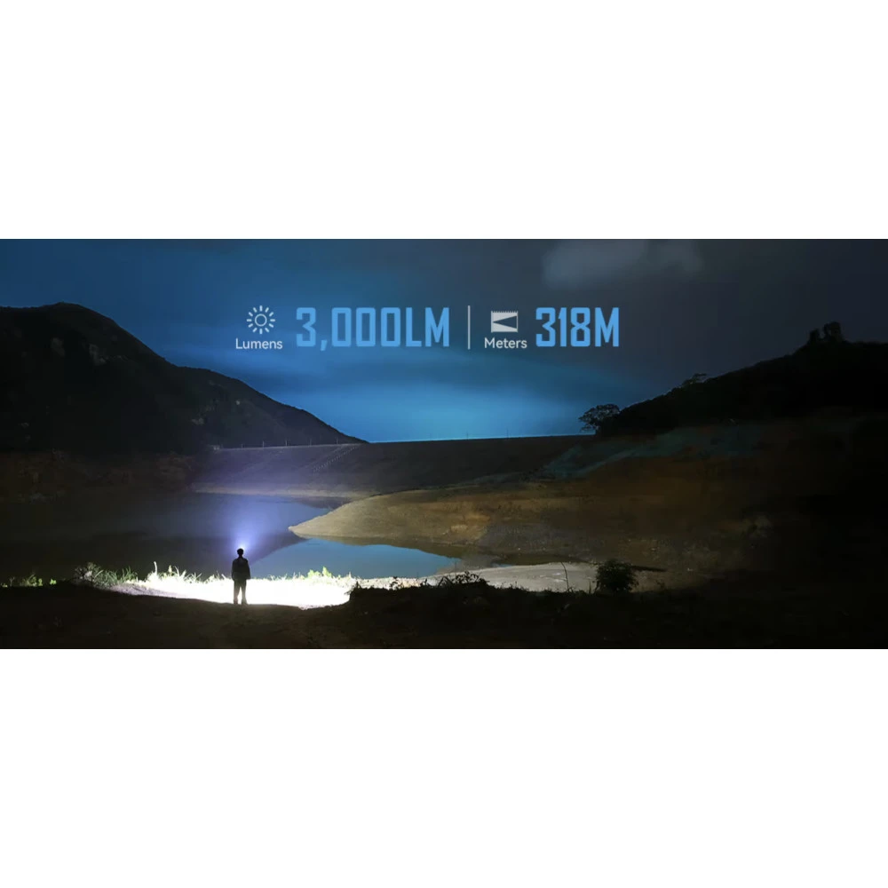 Turbo output : 3,000~900 Lumens;Run-time: 90s+2h35min