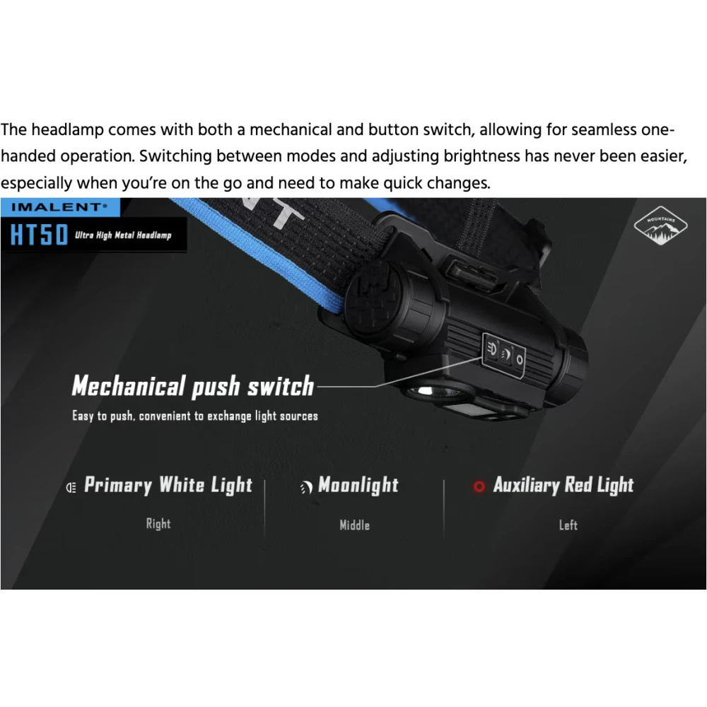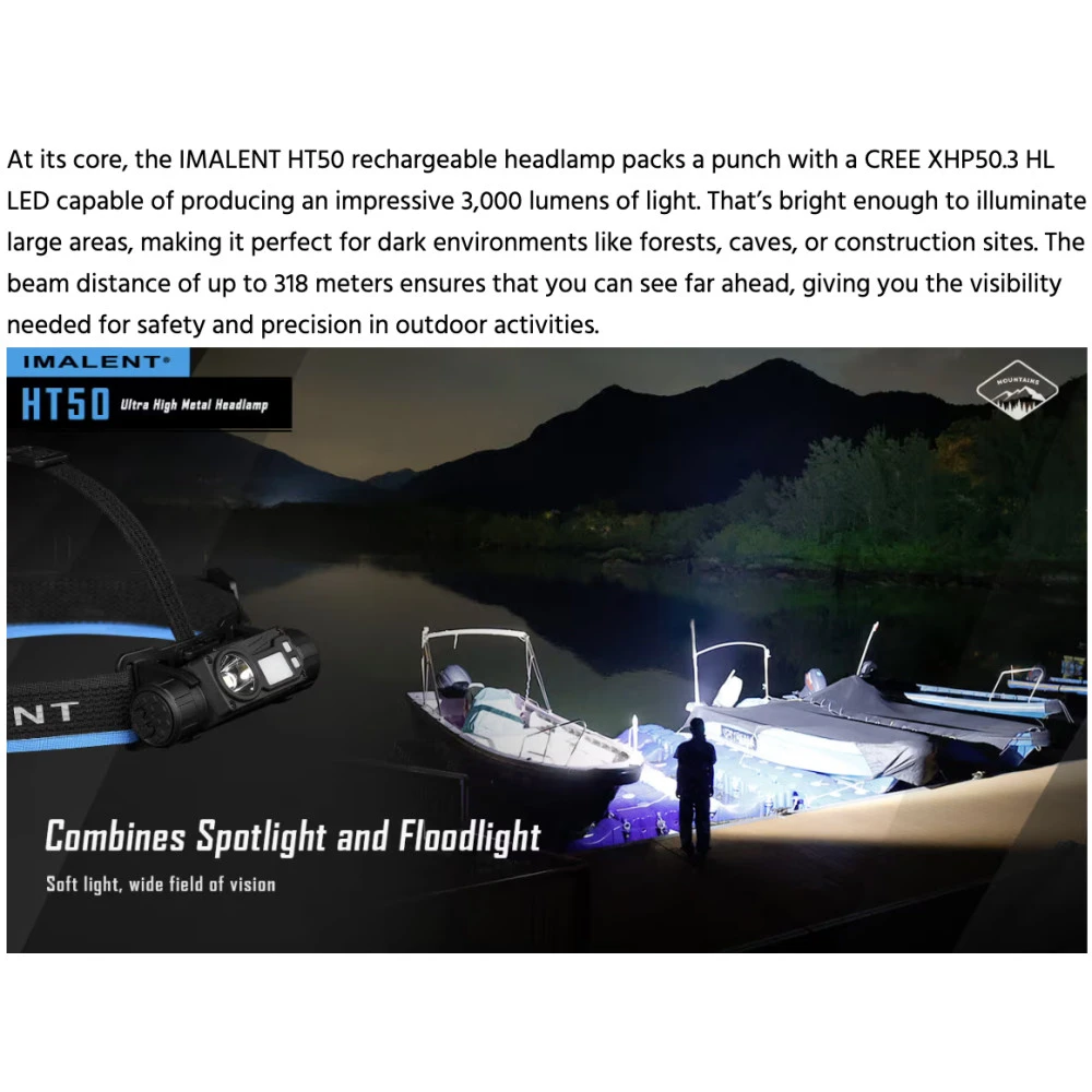 - Utilises one CREE XHP 50.3 HI LED and one CREE red LED. The main white light has a maximum output of up to 3,000 lumens, with a lifespan of up to 50,000 hours.