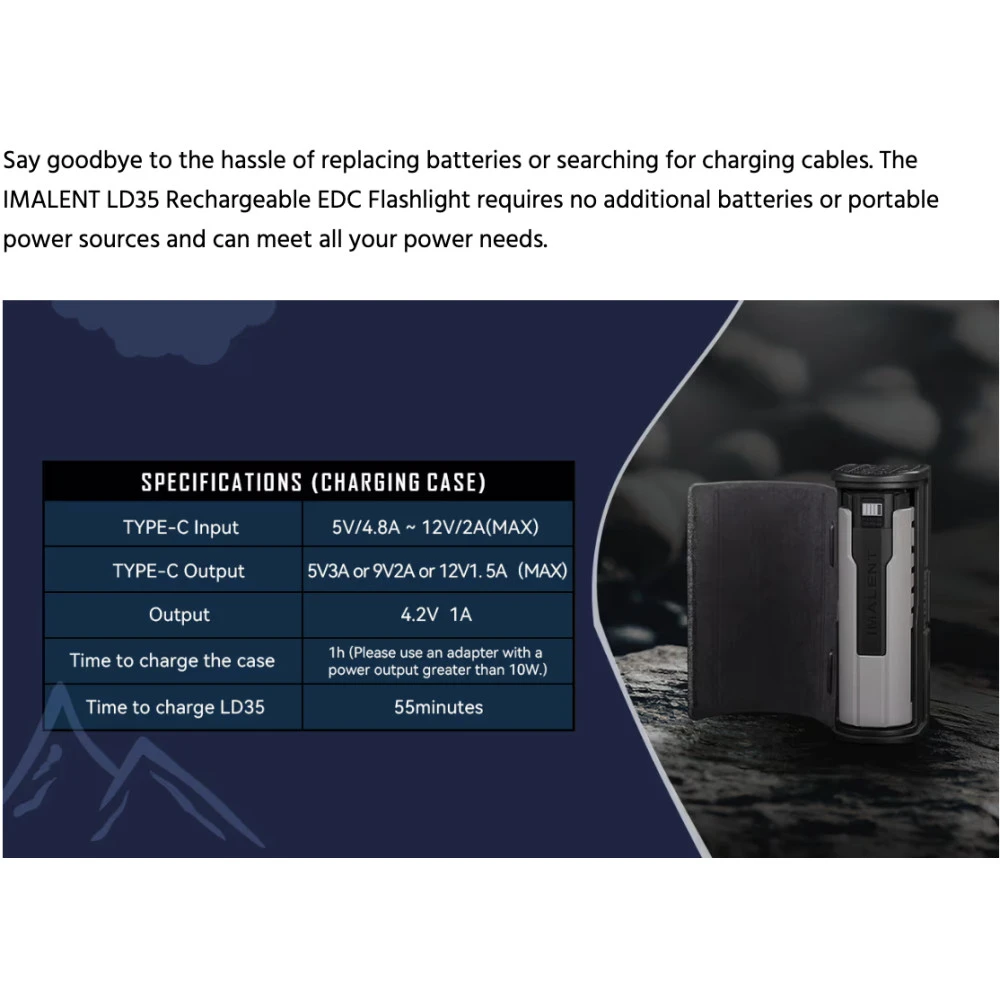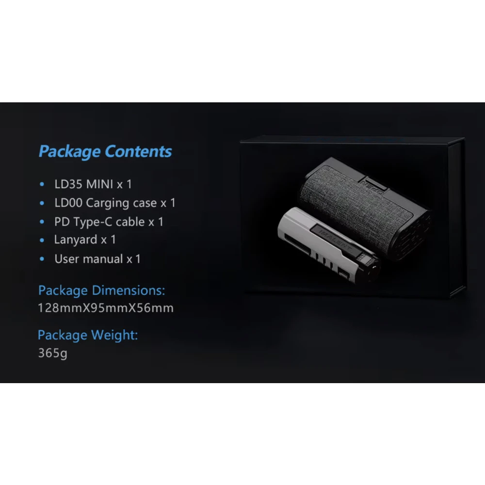 Package Contents: LD35 with built-in battery, LD00 Charging Case, Type-C charging cable, Lanyard, User Manual