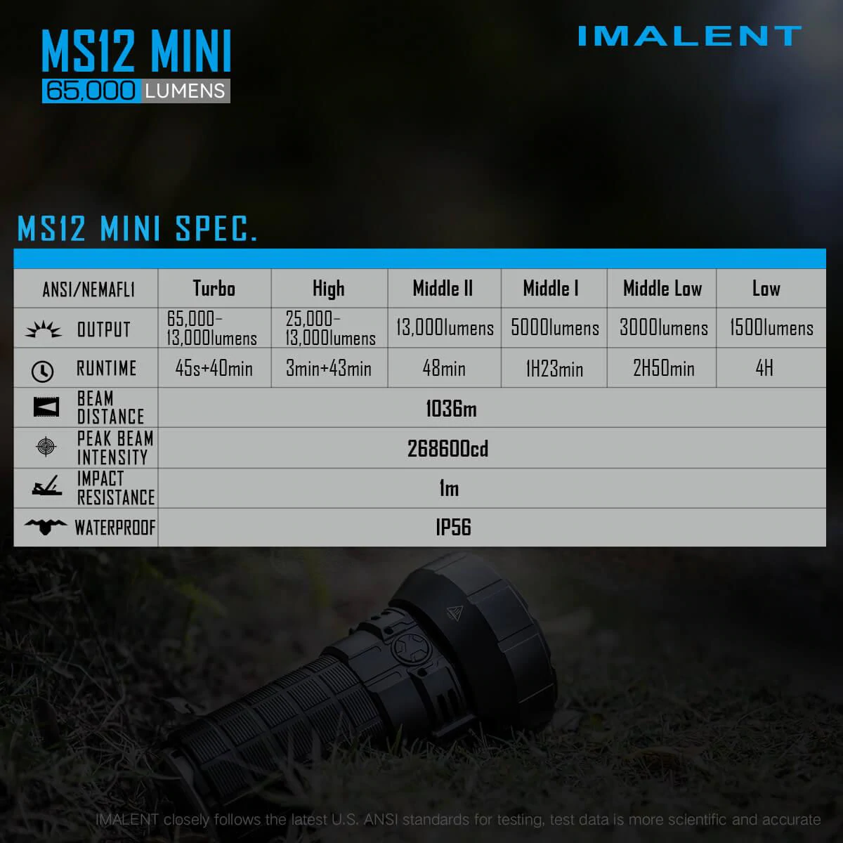 - Turbo: 65000~13000 Lumens – 45 Sec + 40 Mins