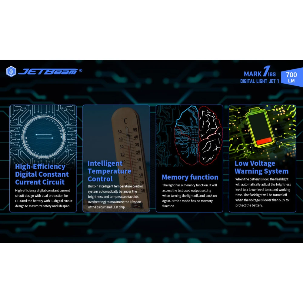 - Intelligent temperature control system to maximise lifespan of LED