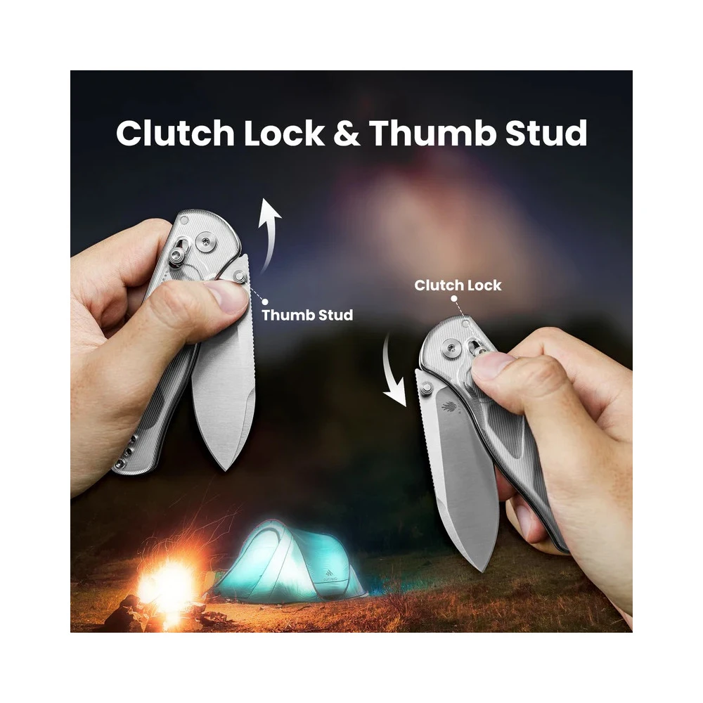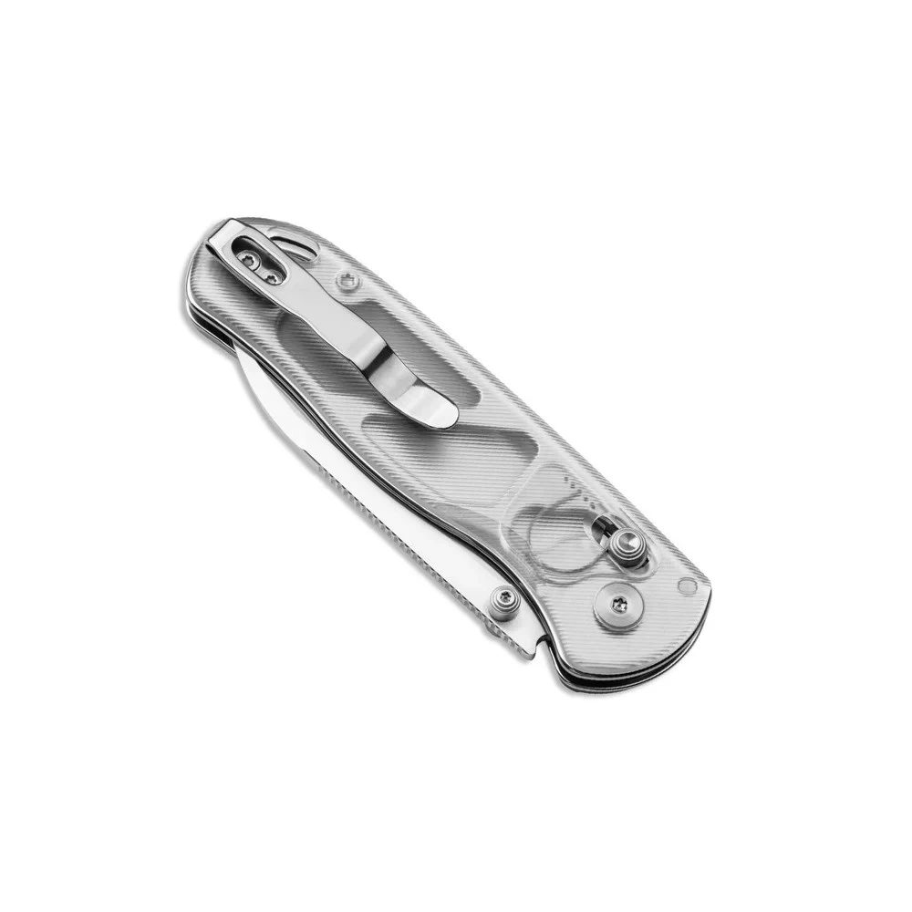 A new type of crossbar locking system. The Clutch lock is designed at the handle, with a unique appearance and high safety in use. The Clutch lock system includes the Clutch bar, adjustable Gemini Spring system, and DED system. The Clutch bar is the lock bar that locks the knife and is also pulled to unlock the knife. The Gemini Spring system is designed with two omega springs and 5 holes on each side of the handle liners. That not only means, the Gemini Spring system has only 5 levels to adjust, but five times five to be 25 customisable options! The strongest level can be chosen for the thumb side and the third level can be chosen for the weaker index finger on the other side. Twins but on a different level that’s why we call it the Gemini Spring system. The DED system is short for the D-shape Easy Disassembling system which is the most important part of the whole locking system since the easy disassembly simplifies the adjustment of the springs.
