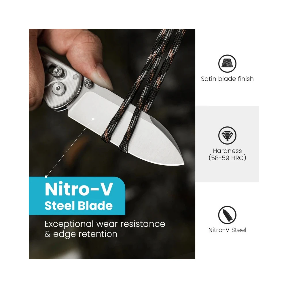The Nitro V Steel Blade features German steel construction, providing excellent corrosion resistance, toughness, wear resistance, and edge retention. This ensures a reliable and durable cutting experience.