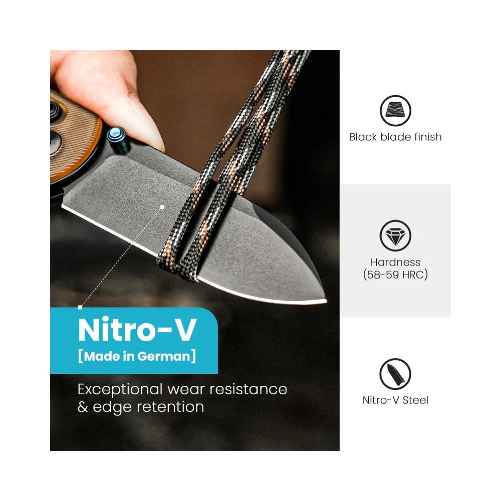 The Nitro V Steel Blade features German steel construction, providing excellent corrosion resistance, toughness, wear resistance, and edge retention. This ensures a reliable and durable cutting experience.