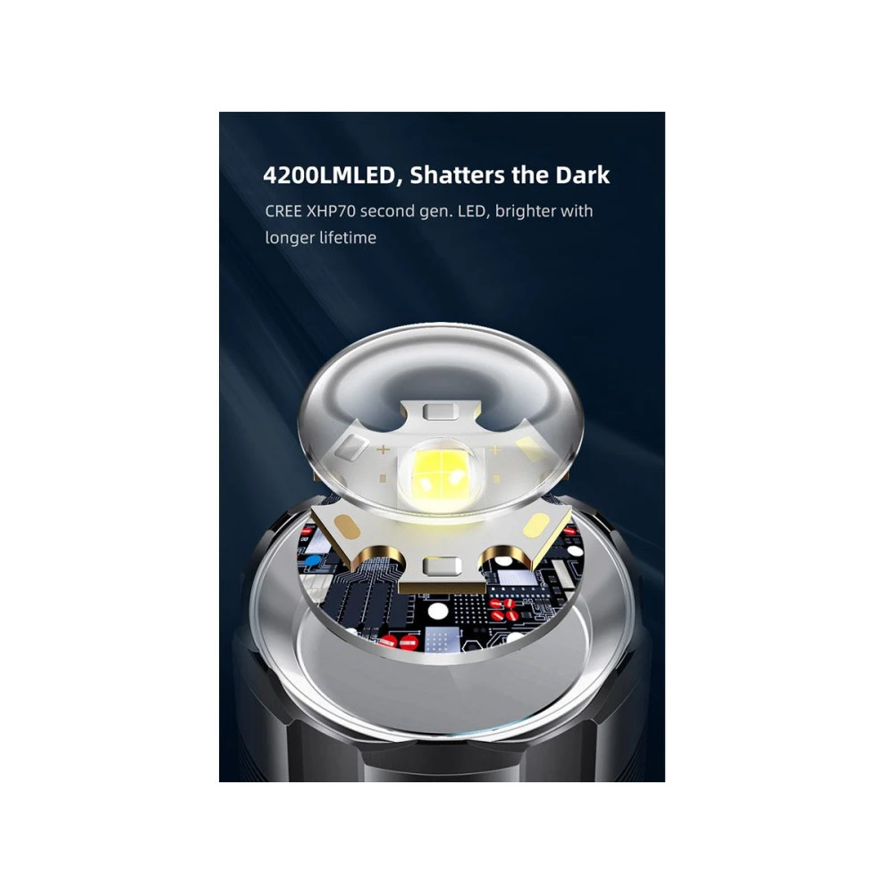 - CREE XHP70.2 LED supports the light with a longer lifetime and brighter output