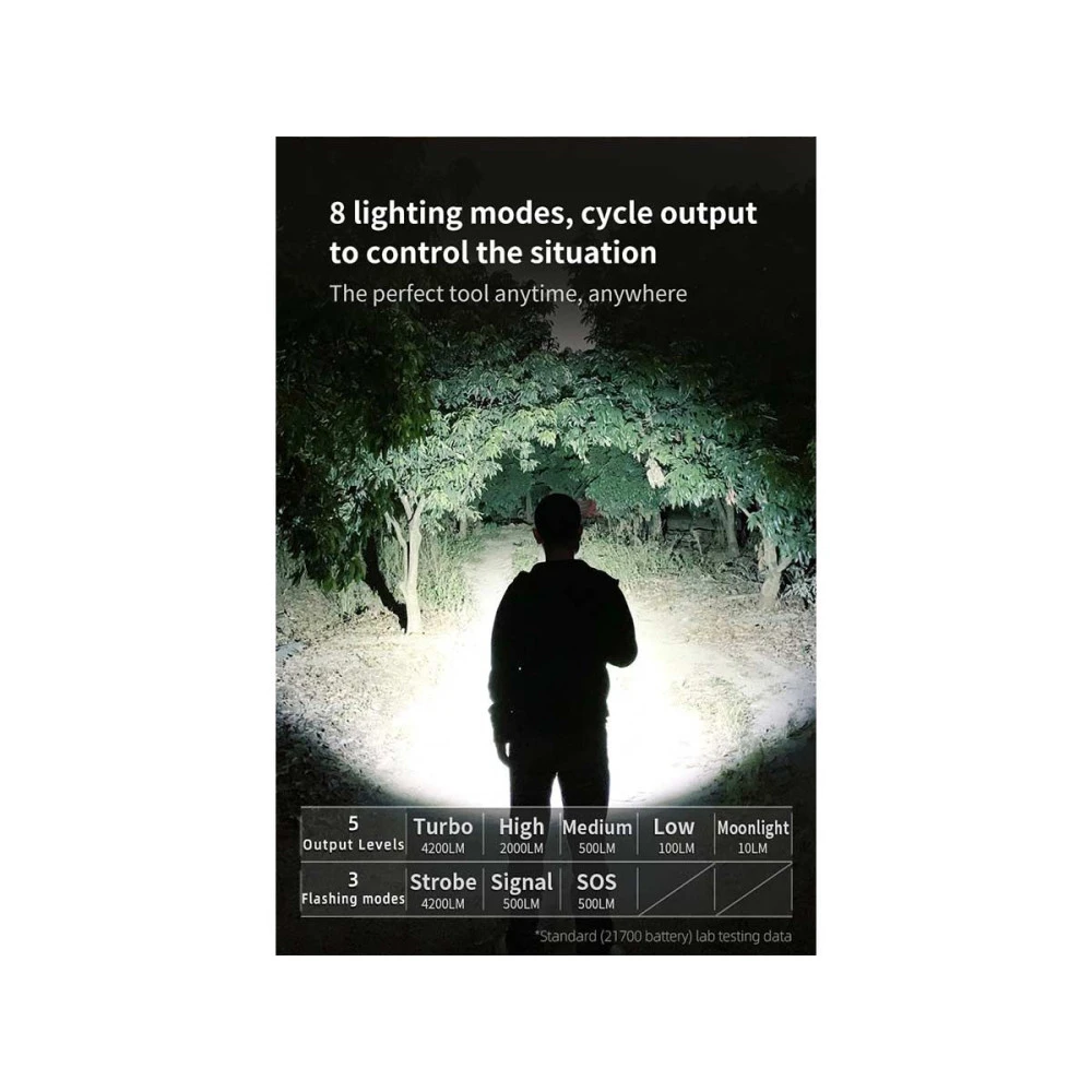 - 8 output modes including strobe, beacon and SOS for any situation.