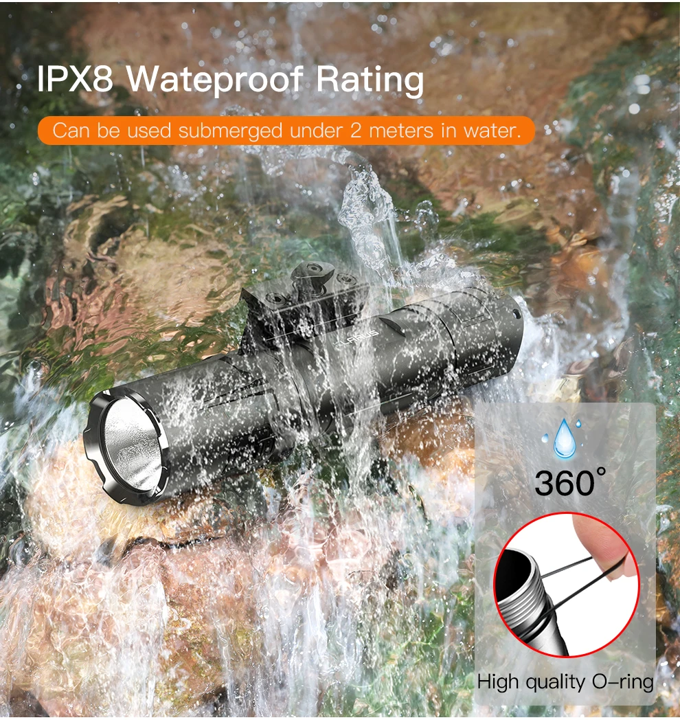 Included Accessories: 1x 21700 battery, Allen Wrench, Rail Mount, Spare O-ring(s), USB-C Cable, User Manual Flashlight