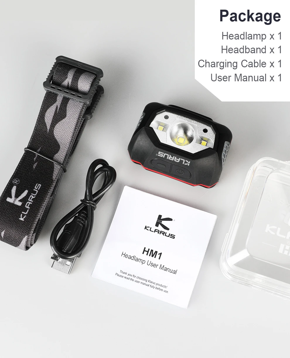 - 1 x Klarus HM1 Headlamp