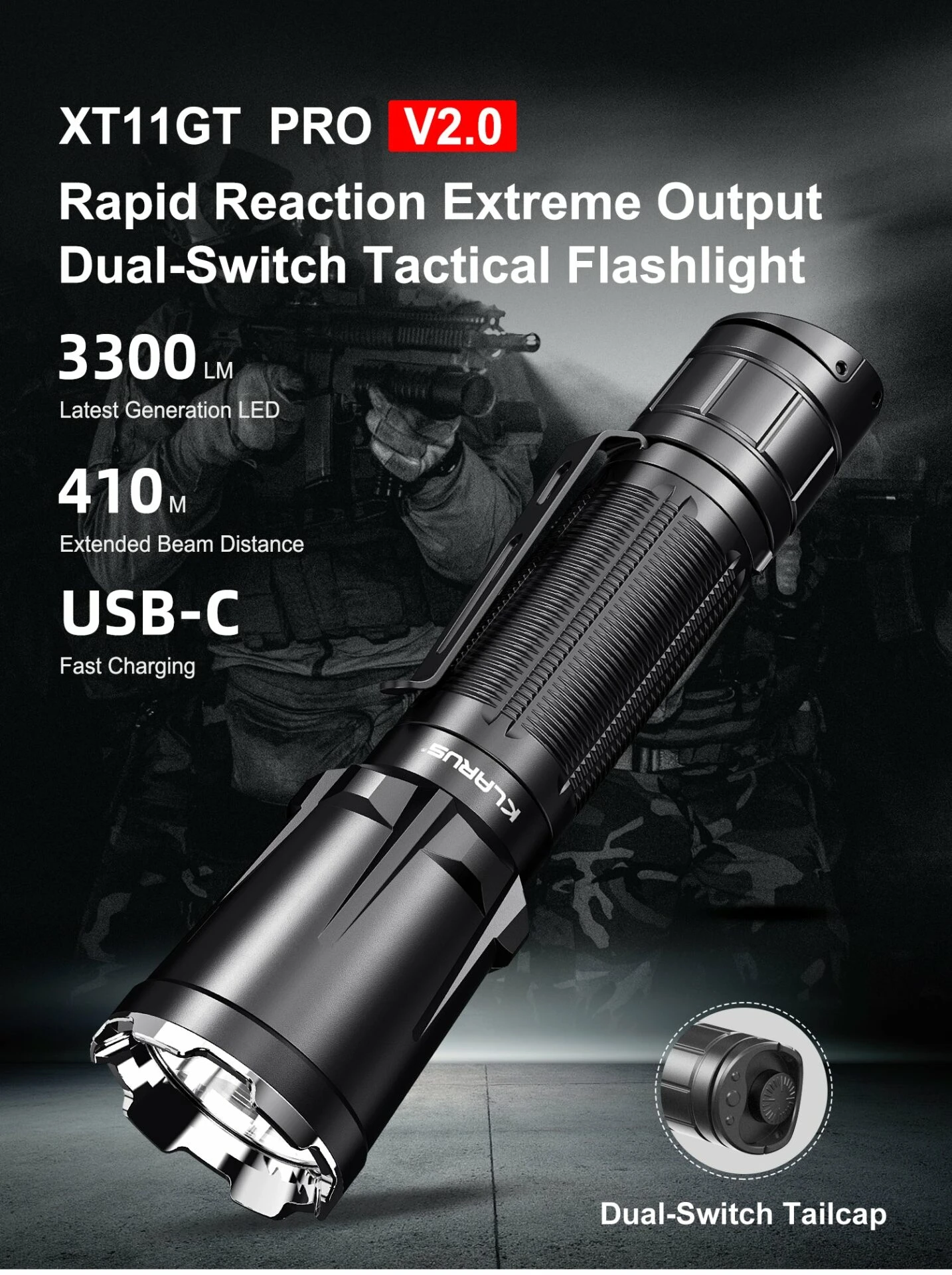 - Latest Generation dual-switch tail cap provides one-handed operation with quick-access to essential modes and functions.