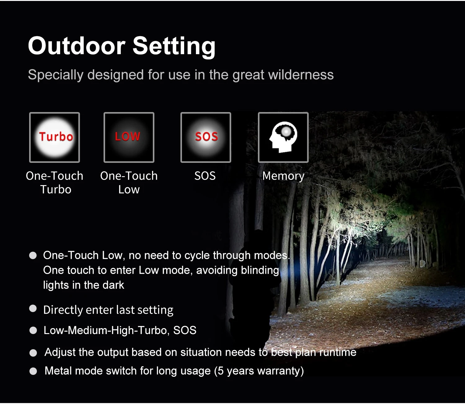 - SOS: 200 Lumens – 32 Hours