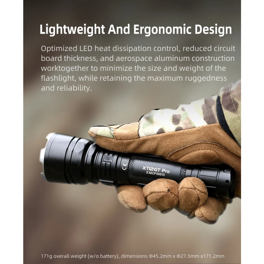 - Multiple output levels with memory, SOS function; suitable for all needs in Hunting, Hiking, Camping or Search and Rescue