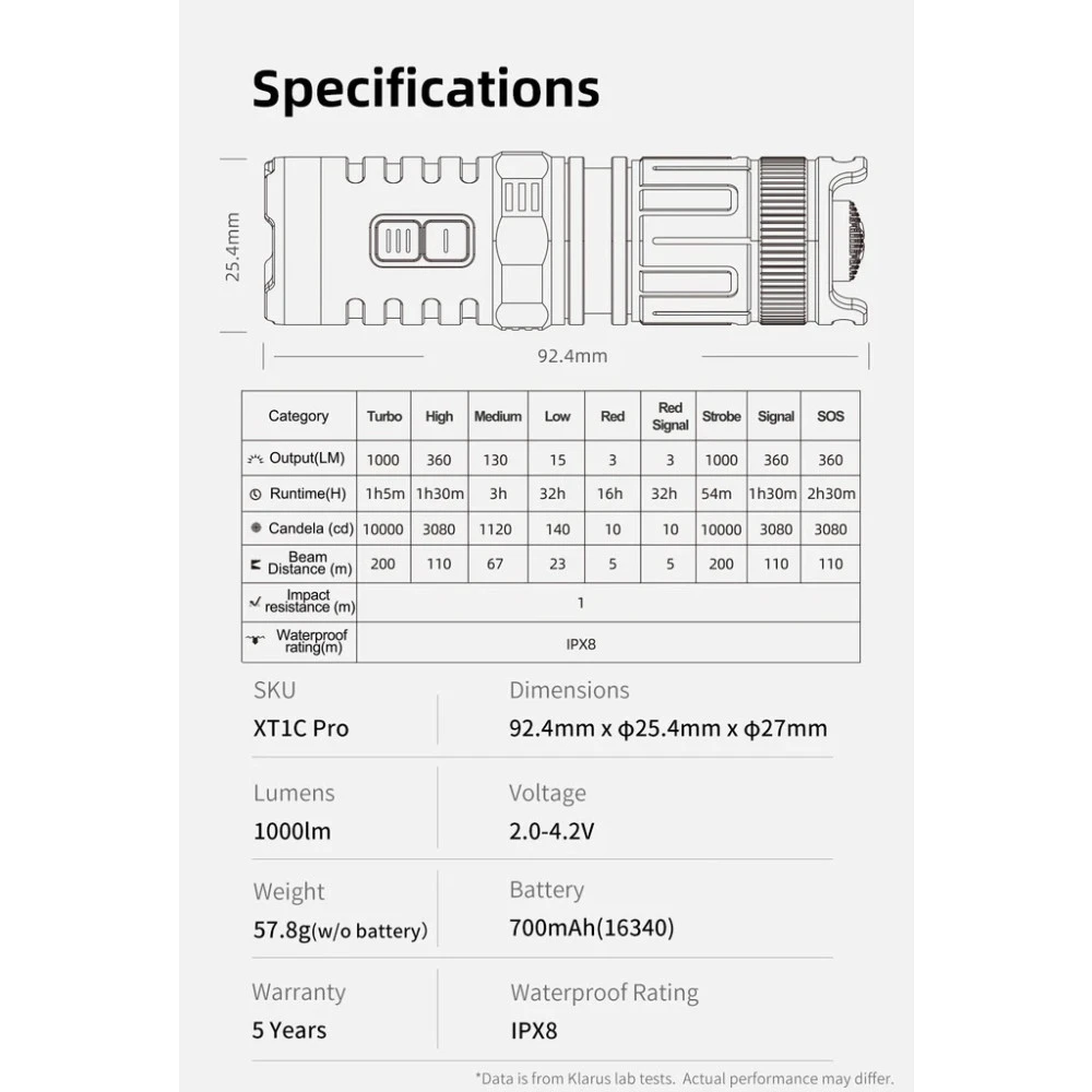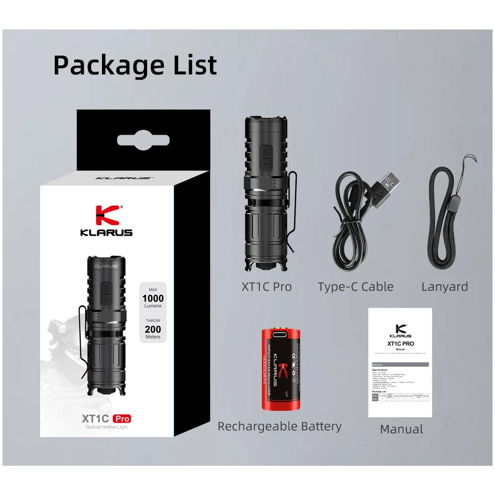- 1 x Klarus XT1C Pro