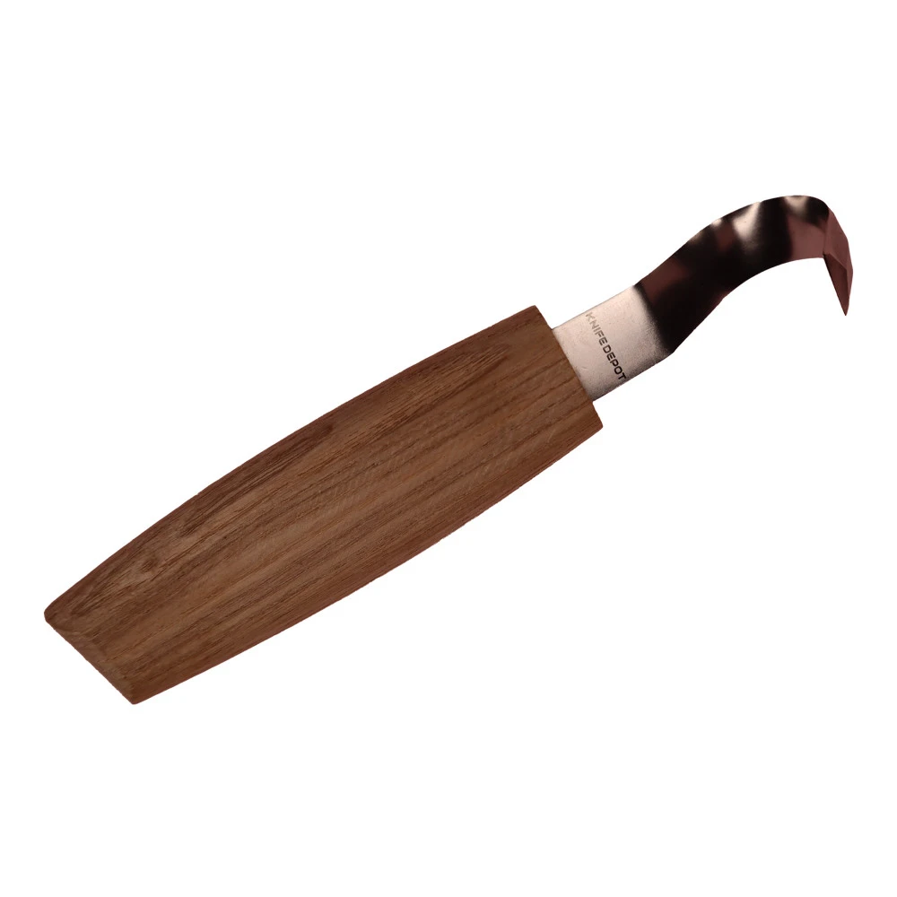 The hook knife (spoon carving tool) is for carving spoons, bowls, and round, deep holes in wood for other crafts. It is essential for cutting holes in wood surfaces. Due to the curved (semicircular) shape, such a knife is very effective for various woodworking tasks, namely figured woodcarving. Using it, you can refine the form of a cup, spoon, bowl, and other products with a similar design. Such a tool will become indispensable not only for carving spoons from wood but also for performing various other techniques in the art of wood carving related to cutting grooves in the wood. It suits right-handed users.