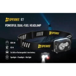 SPERAS B47L-1 Lightweight Rechargeable Smart Sensor Running Headlamp (500 Lumens, 119 Metres)