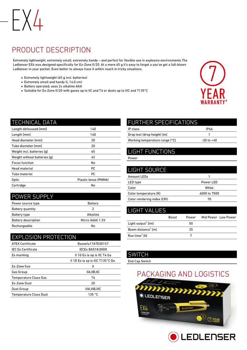 If you’re working in explosive environments, safety is extremely important when it comes to electronics. Safety which is defined in the ATEX directives of the European Union. Torches in the Ledlenser EX series meet these standards in every respect.