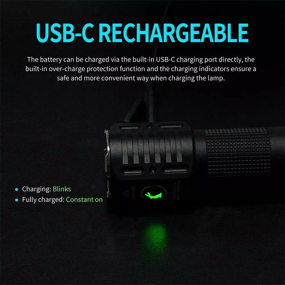 - Aluminium reflector with max 1300 lumens output on Turbo, and 160 metres beam distance