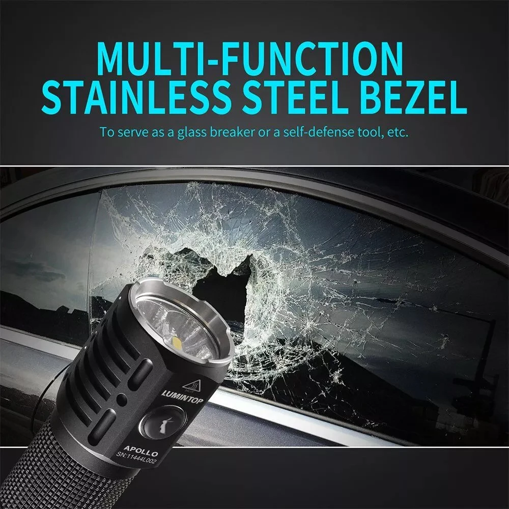 - Stainless steel strike bezel to serve as a glass breaker etc.