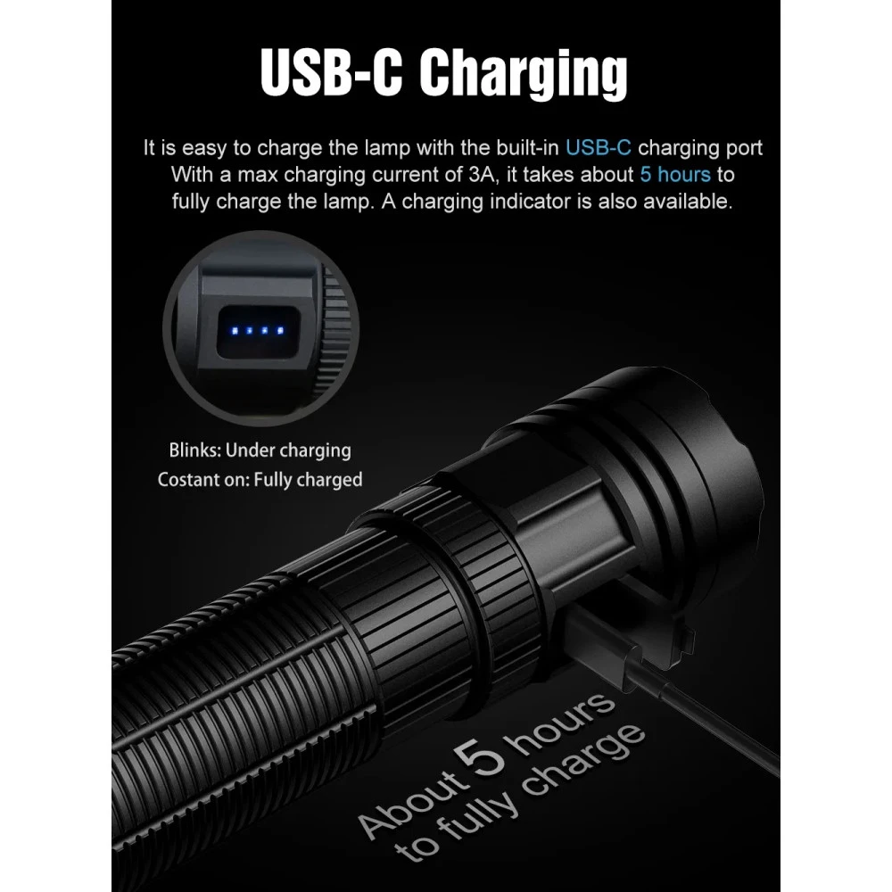 - Turbo: 3600 Lumens, 2mins+5hours