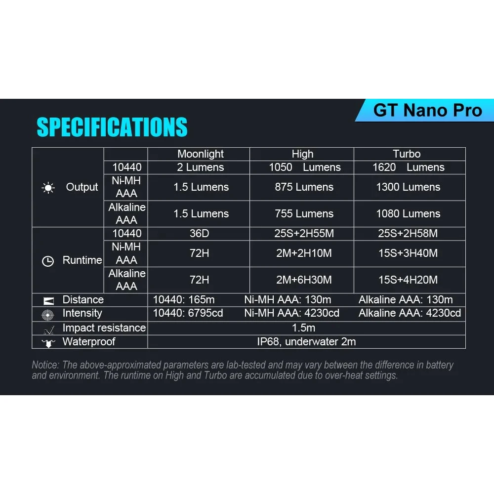 Lumintop GT Nano PRO V2.0 Ultra Compact NW Torch (1620 Lumens, 165 Metres)