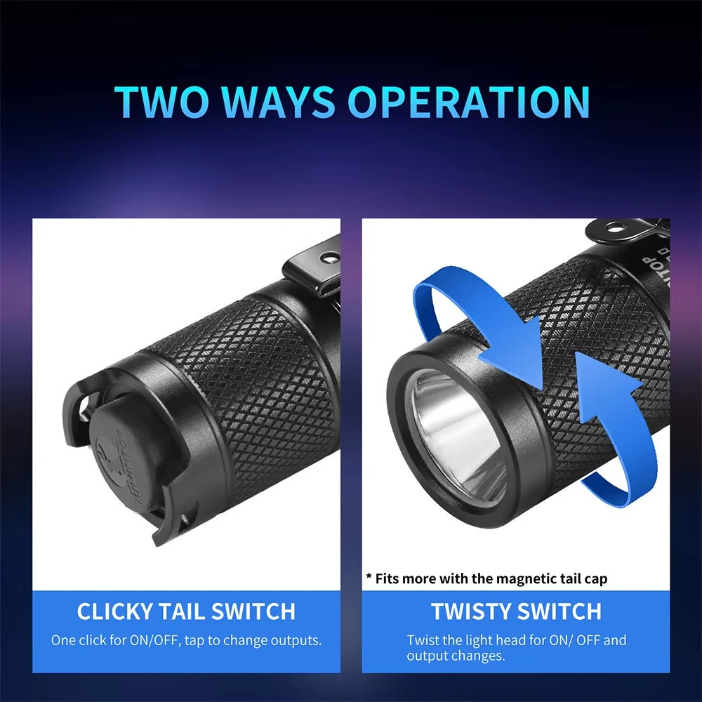 - Powered by one AA or one 14500 rechargeable Li-ion battery (BATTERY IS NOT INCLUDED)