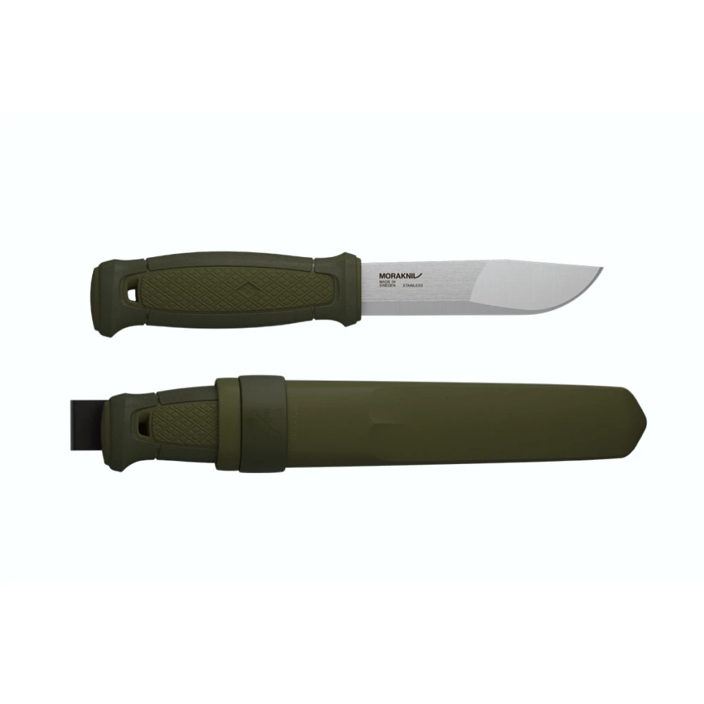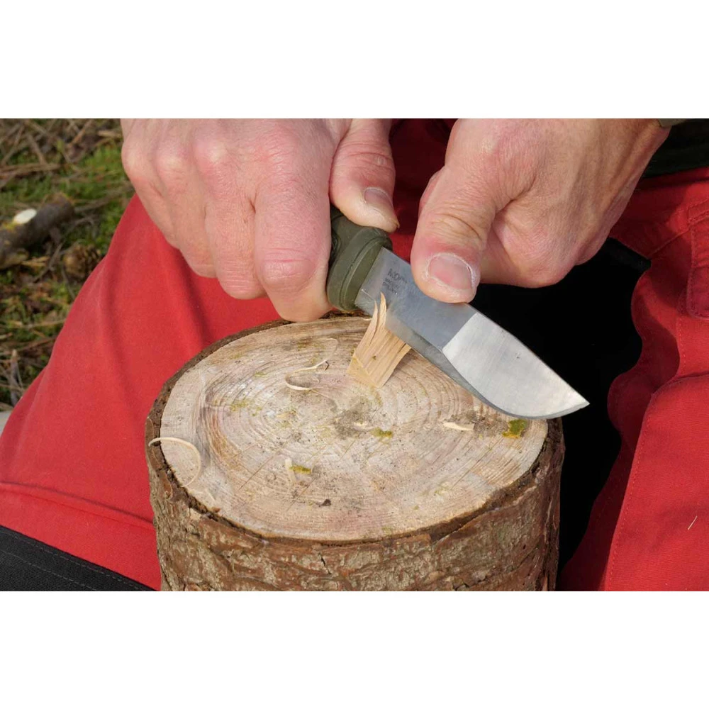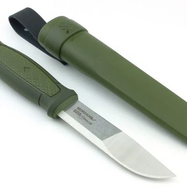 The Morakniv Kansbol is a modern bushcraft/hunting knife. Blade steel is the excellent Swedish 12C27 stainless, known for its corrosion resistance and edge retention properties. The blade profile has been specially crafted for precision work as well as toughness. A specially ground spine allows for the use of a fire steel. The handle of the Kansbol is made from TPE, a very tactile rubber like synthetic giving exceptional grip even in wet conditions. The handle also includes a lanyard hole.