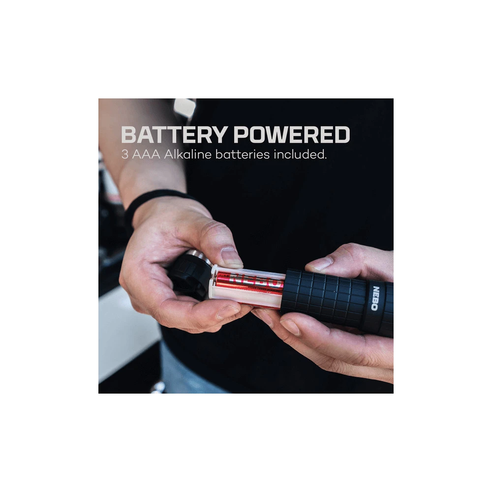 - Powered by 3 x AAA Alkaline Batteries (included)