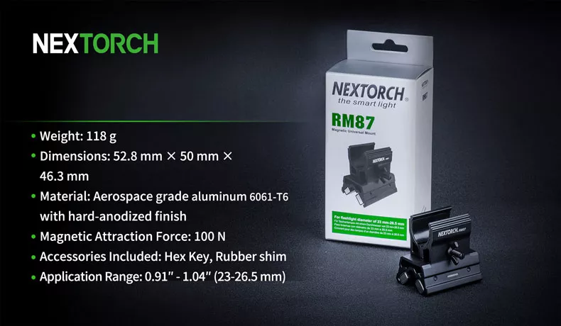 NEXTORCH RM87 Magnetic Flashlight Mount For 23-26.5mm Diameter Flashlights