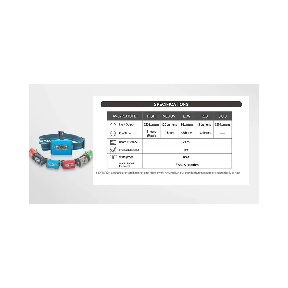 NEXTORCH Trek Star Lightweight Headlamp With Red Light (220 Lumens , 3AAA)