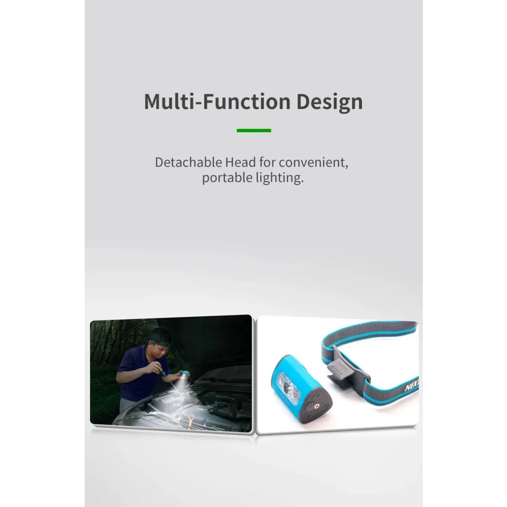 - Detachable head for convenient, portable lighting