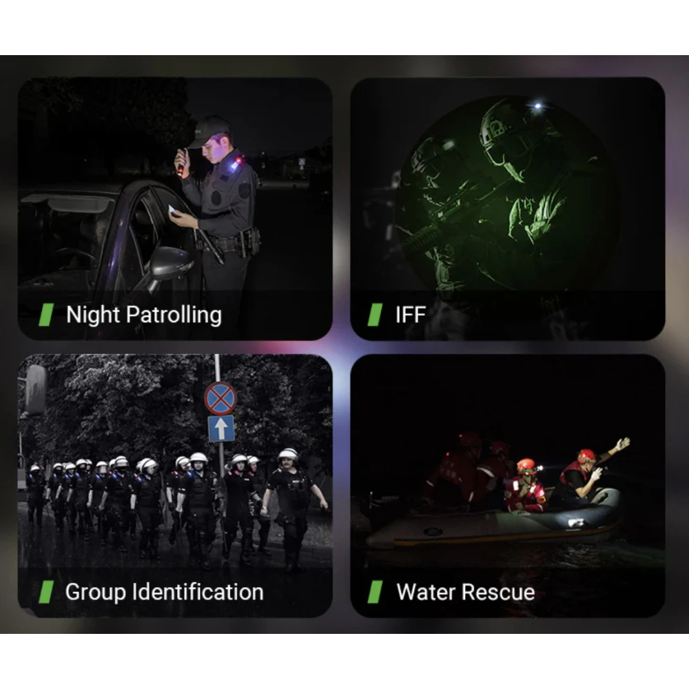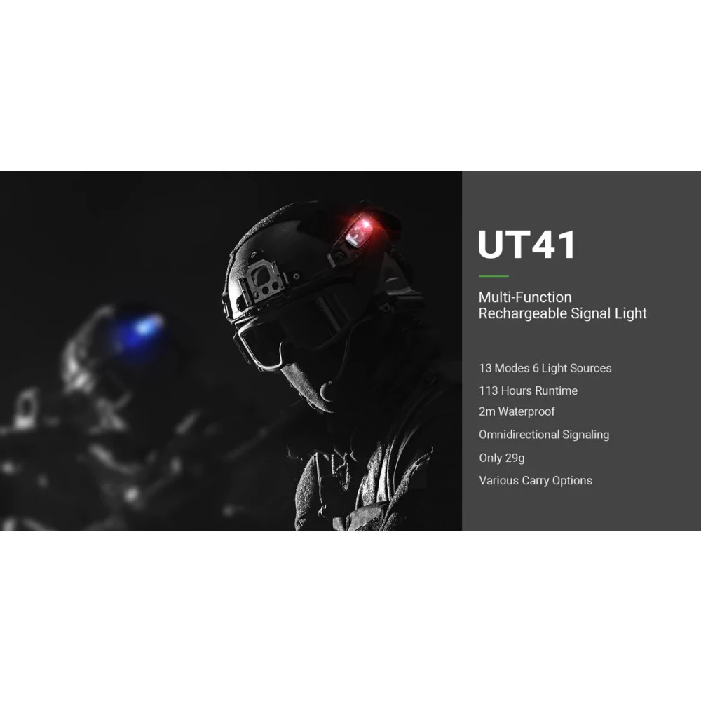 The UT41 from Nextorch, provides a variety of operation modes in different colours which can meet various application requirements such as patrol duty, grouping and identification, search and rescue, water operations. It can quickly and easily be attached to clothing, equipment, and helmets, and has a dual-switch for easy operation.